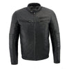 Milwaukee Leather SFM1806 Men's Black Euro Collar Café Motorcycle Jacket with Side Stitch