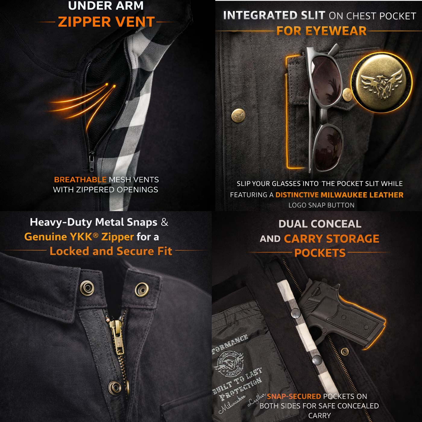 Milwaukee Leather MPM1670 Men’s Two-Tone Armored Flannel – Solid Front, Plaid Back, CE Armor, Kevlar® Reinforced