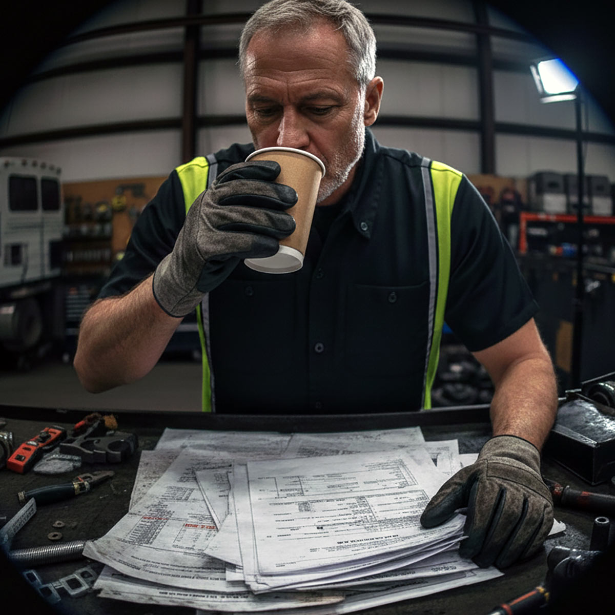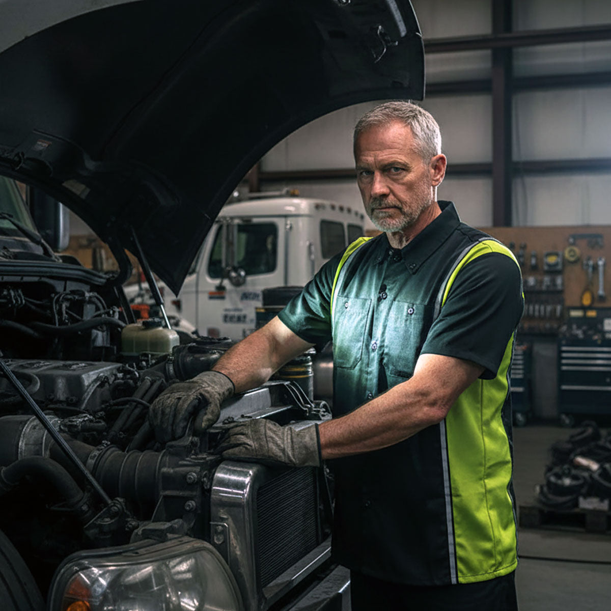 - Mechanic‑grade 50/50 cotton‑poly blend
