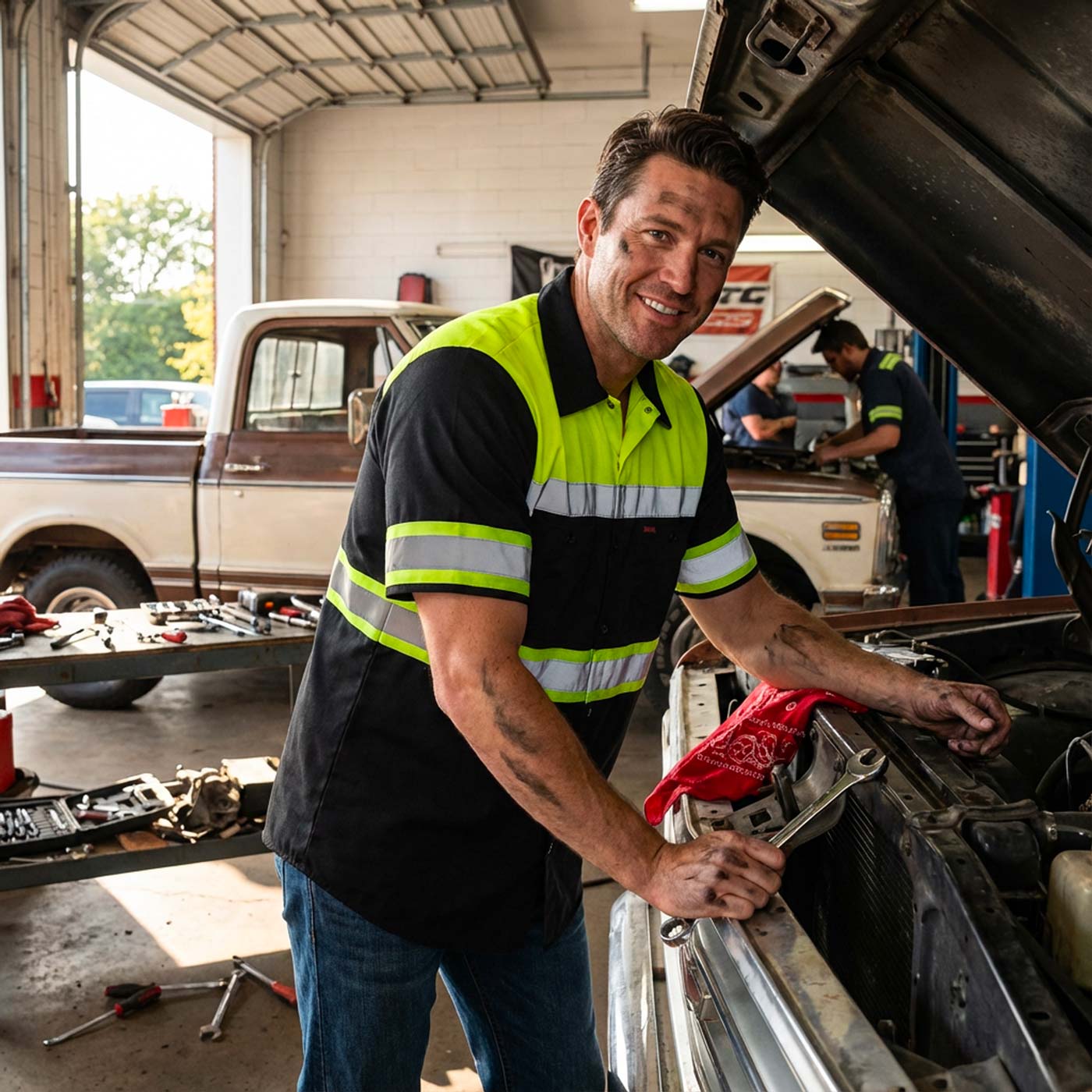 • Shop‑to‑street colors that hide grease — Black/Grey