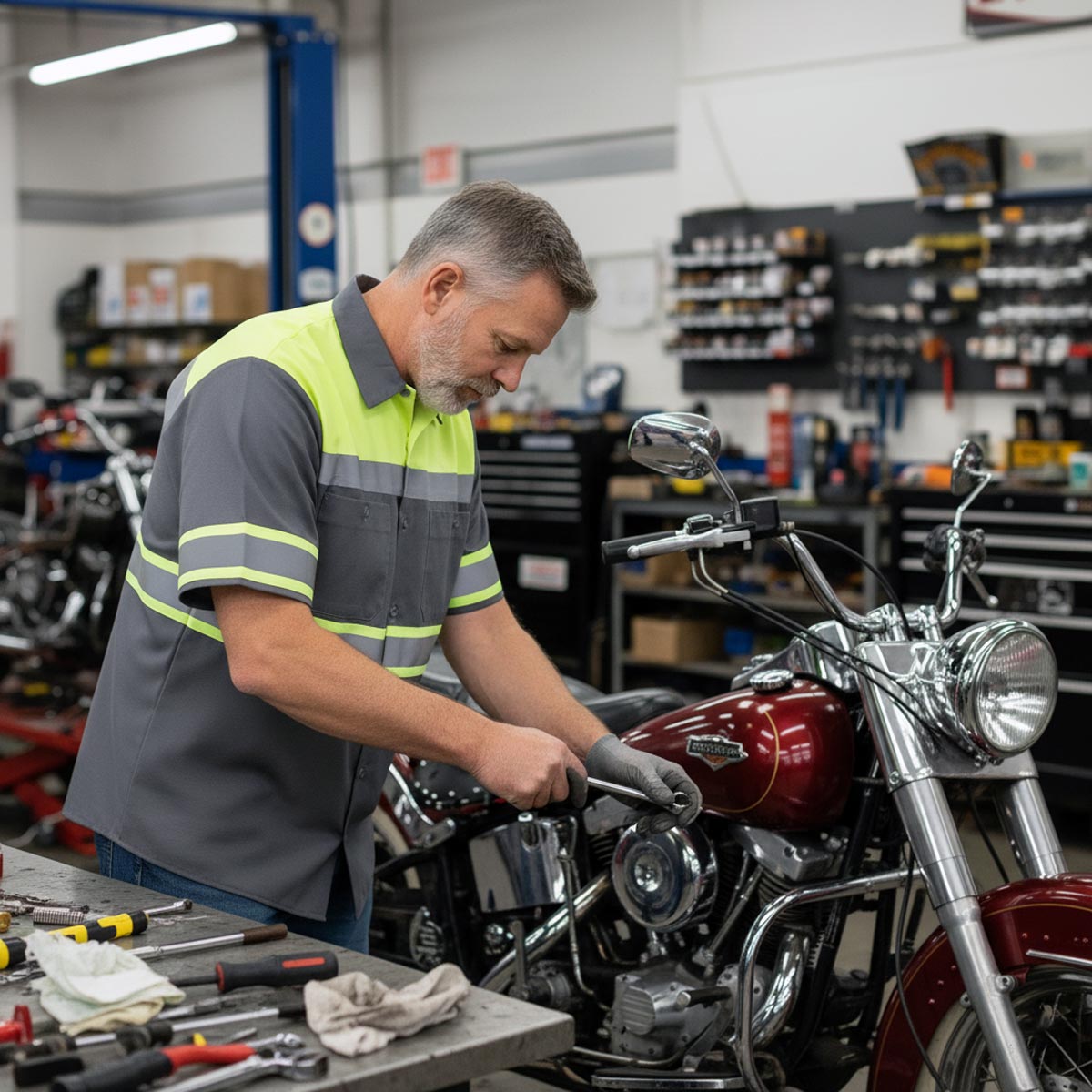 Built for wrench time and throttle time — tough, breathable, and clean enough for the after‑ride.