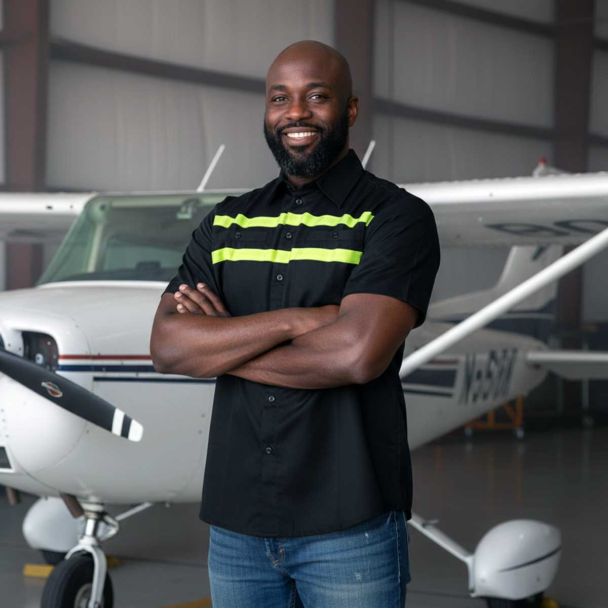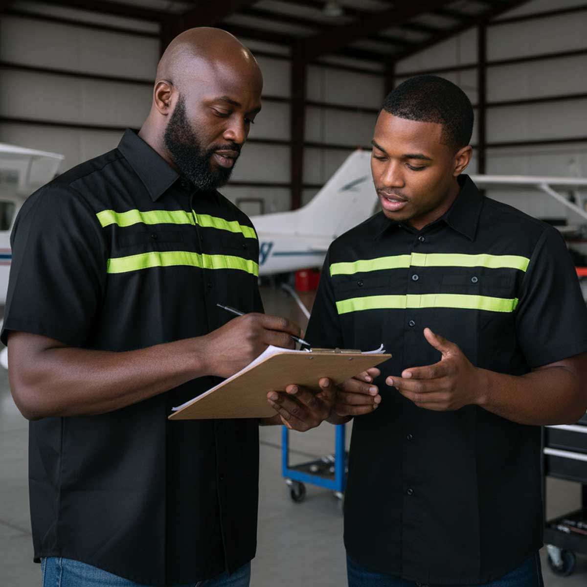 MMCC MMC16005 Men's "Petrol" Mechanic Button Up Shop Shirt, Reflective Strip, Dual Chest Pockets - Black-Neon Green -