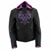Milwaukee Leather MPL1967 Women's 3/4 Hooded Black and Purple Textile Jacket with Reflective Tribal Detail