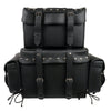 Milwaukee Leather SH650 Large Black PVC 4-Piece Studded Motorcycle Touring Pack with Barrel Bag