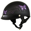 Hot Leathers HLT70 'Purple Butterfly' Flat Black Advanced DOT Motorcycle Half Face Biker Helmet