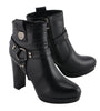Milwaukee Leather MBL9432 Women’s Black Harness Ankle Boot with Block Heel
